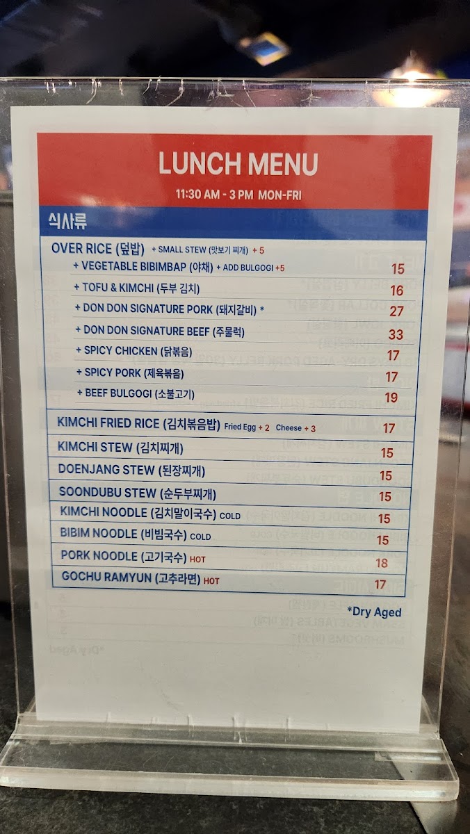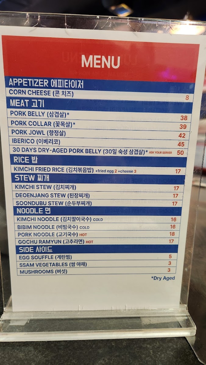 Grilled soy marinated dry aged pork collar Served over rice with Scallion salad and Onion Kimchi